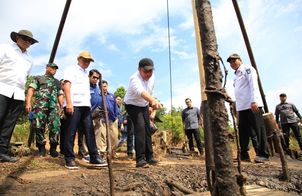 Menteri Energi dan Sumber Daya Mineral (ESDM) Bahlil Lahadalia bersama Gubernur H. Herman Deru meninjau sumur minyak rakyat di Kecamatan Keluang, Kabupaten Musi Banyuasin (Muba).--