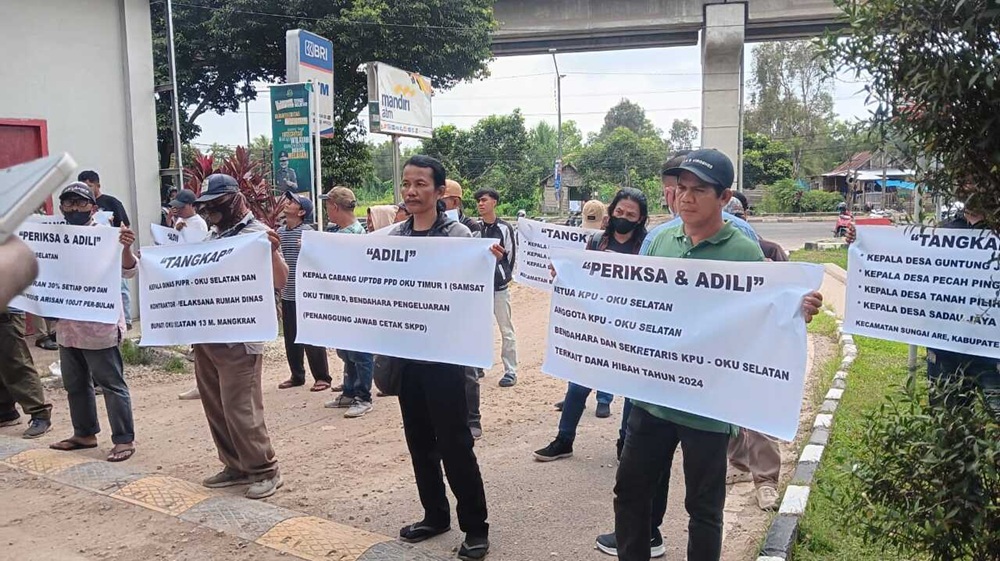 Aksi tersebut digelar sebagai bentuk desakan kepada aparat penegak hukum agar segera mengusut dugaan korupsi dana hibah Pilkada 2024 yang dikelola Komisi Pemilihan Umum (KPU) Kabupaten Ogan Komering Ulu (OKU) Selatan.