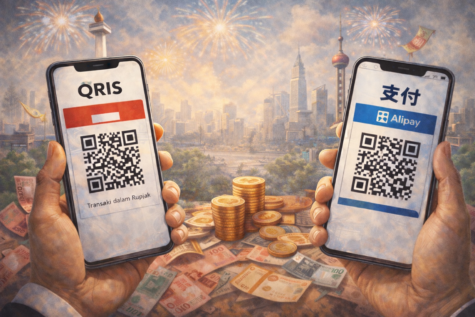 Akhirnya Indonesia bisa mendapat perlakuan adil dari Tiongkok: sudah lama Alipaynya Tiongkok bisa dipakai di Indonesia. Kini QRIS-nya Indonesia juga bisa dipakai di Tiongkok.
